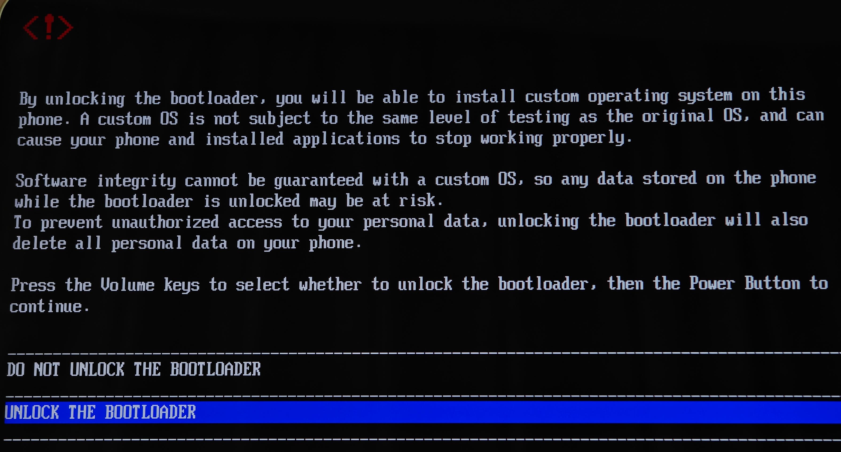 UNLOCK THE BOOTLOADER”,完成解锁操作。之后手机全部清除数据重启。