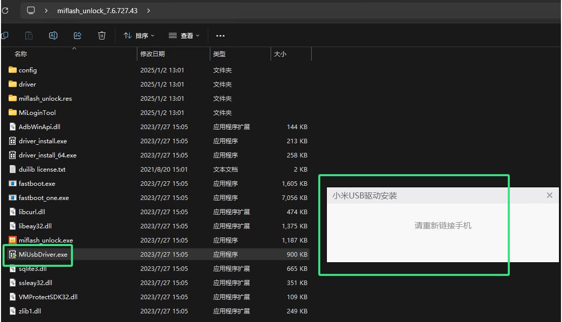 MiUsbDriver.exe驱动安装程序安装上去,不然识别不了手机。